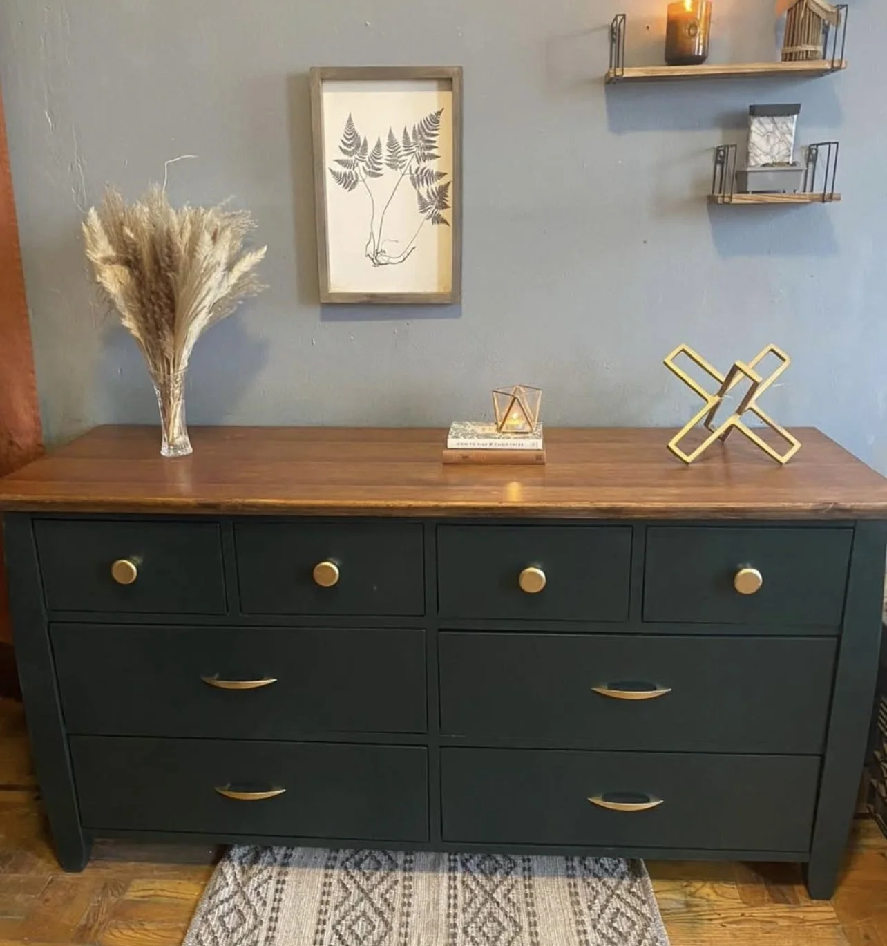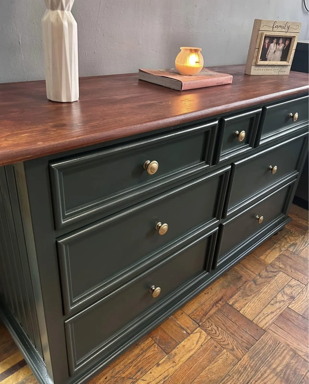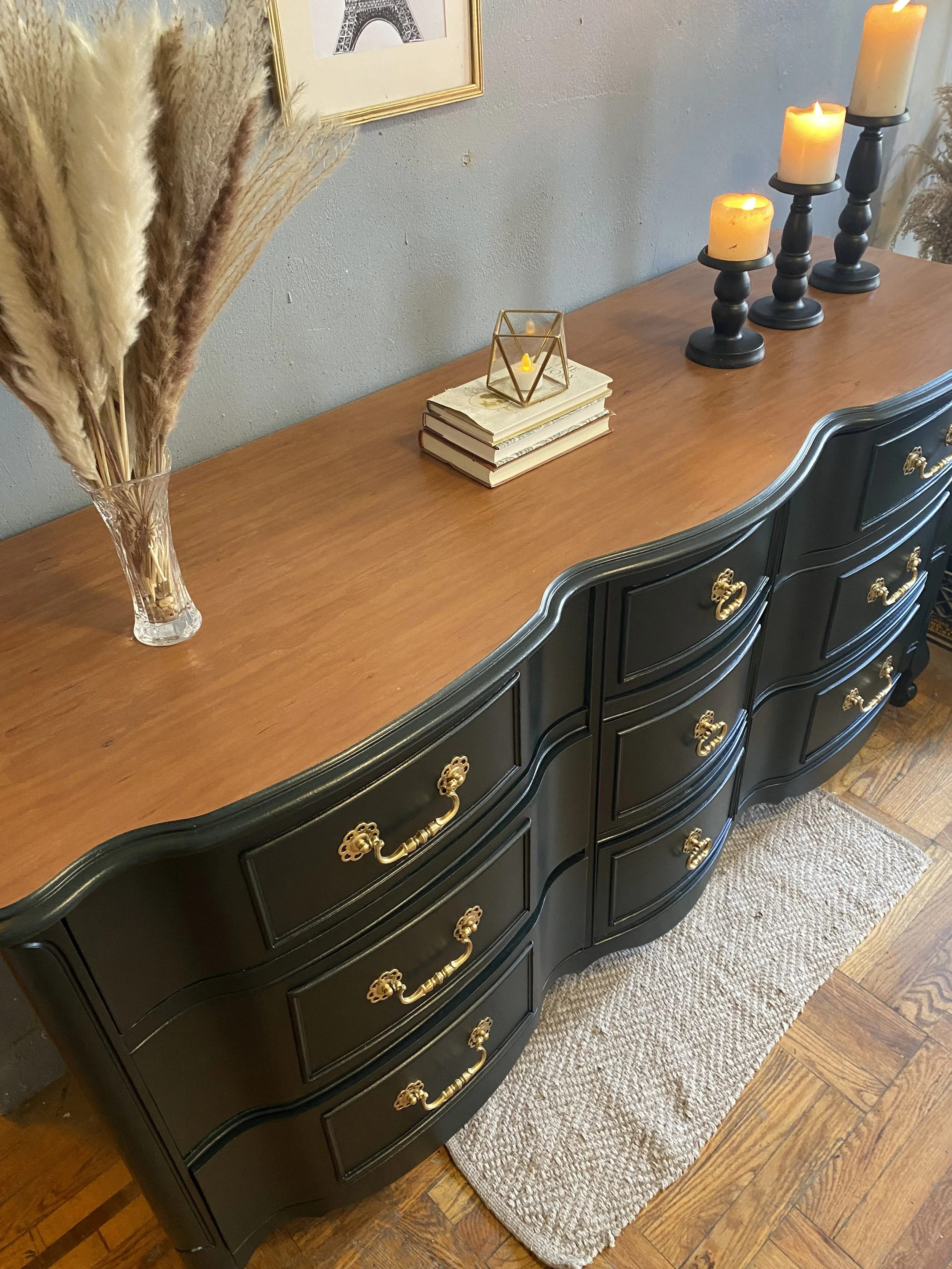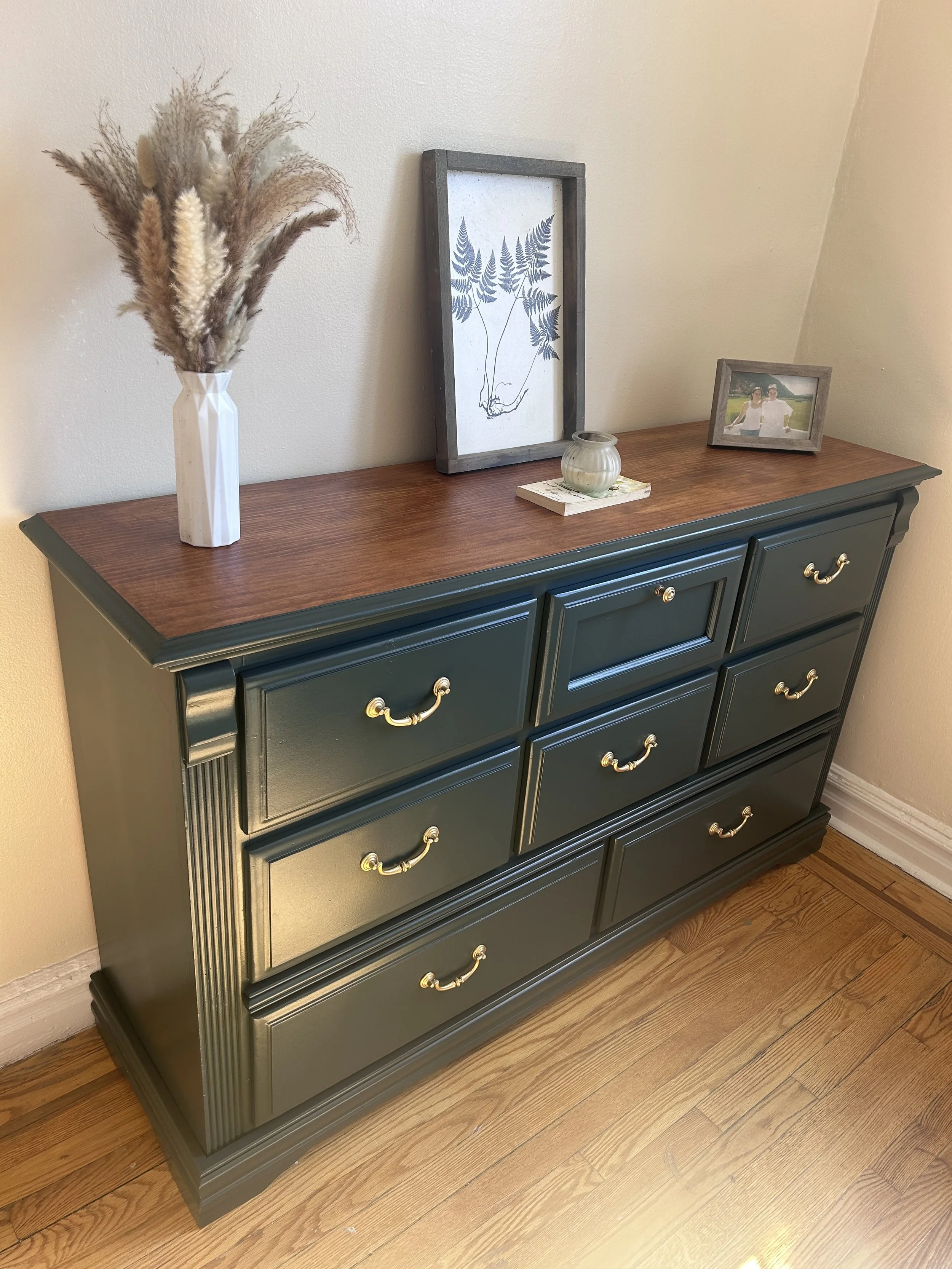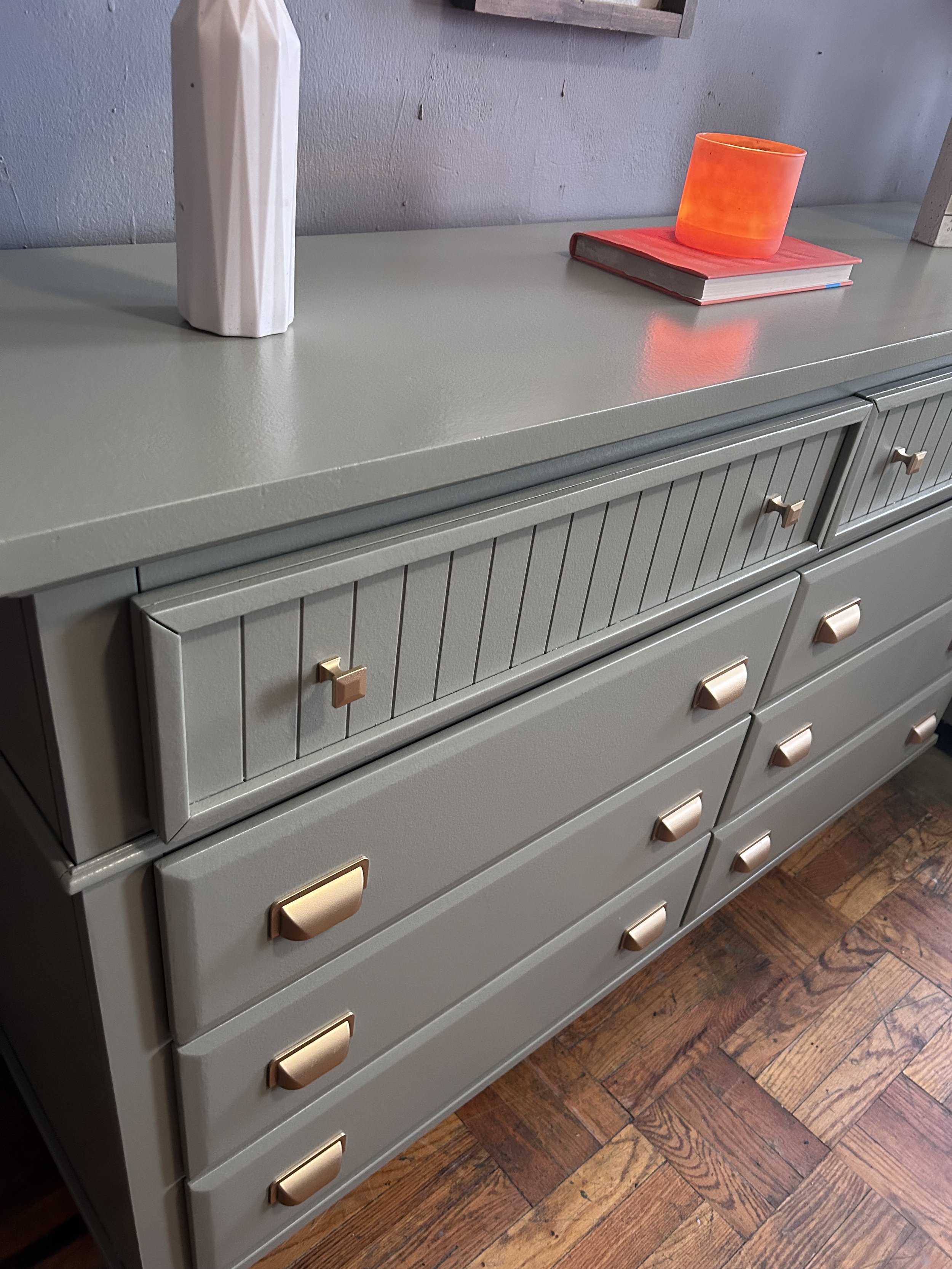 Earthy, timeless, and always ready to shine. This route saves sourcing time, allowing us to focus on what we do best: transforming pieces with finishes we know and trust. If you love soft greens, warm wood tones, and clean, minimal hardware, you’re in the right place.
